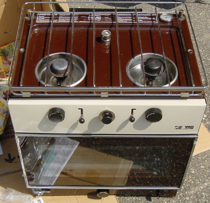 Einen Petroleumherd inkl. Backofen (Modell 157), farbig emailliert, leider auch nur selten gebraucht zu bekommen. Der 157-er hatte einen Brenner unten im Brennraum.